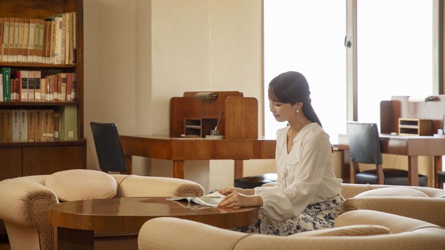 ゆったりとしたソファーで読書をライブラリー(川奈ホテル 2階)