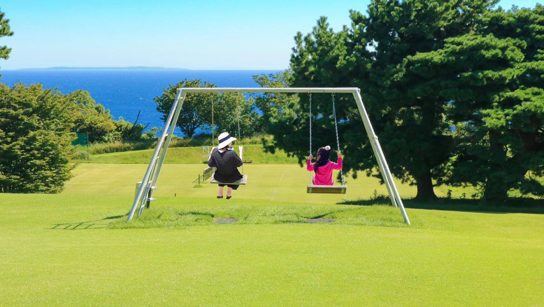 カップルやお子さまと一緒にブランコ(川奈ホテル 前庭)