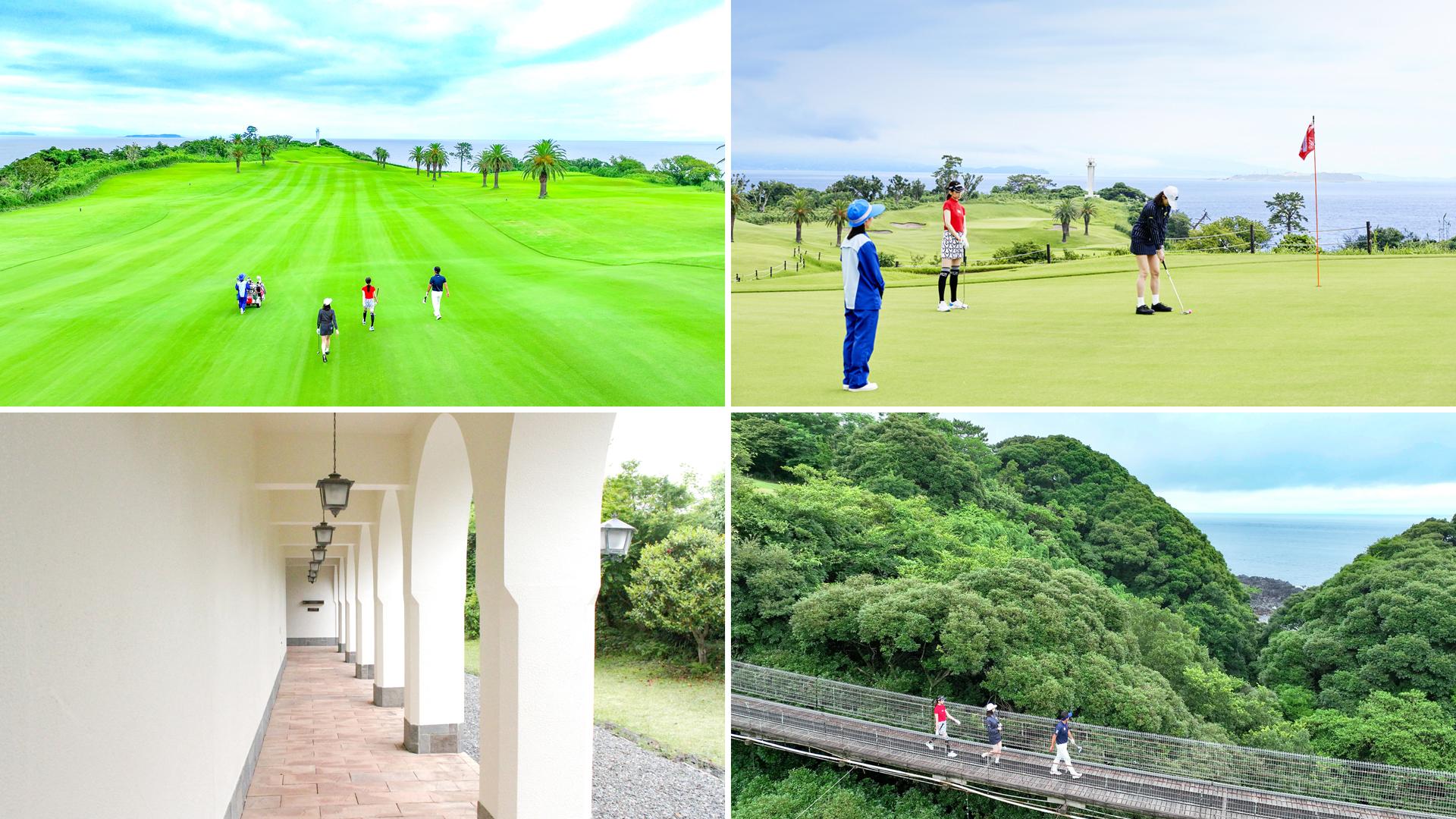川奈ホテルの歴史の始まりとなった大島コース。(写真右下:大島コース6番ホールのつり橋)