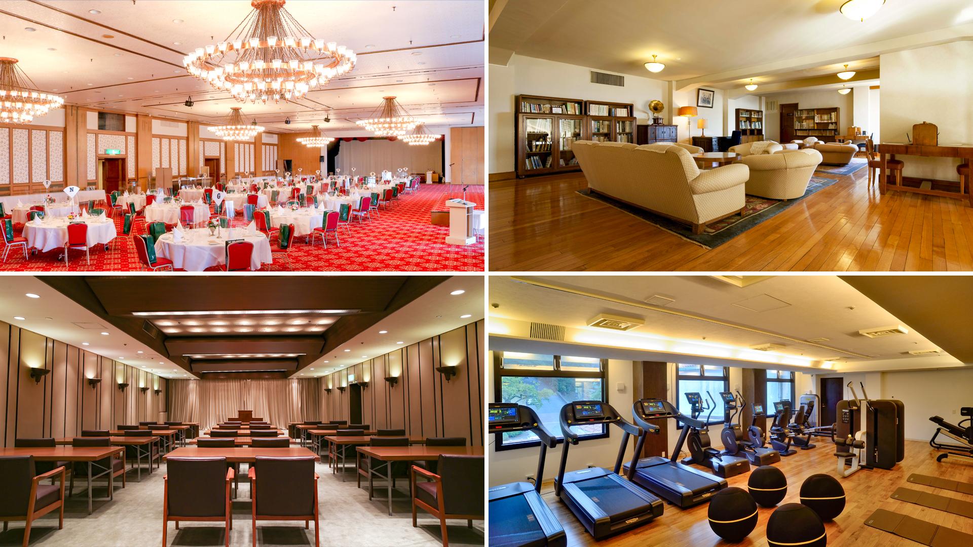 撮影用途に合わせて使用可能な大宴会場や大会議室。落ち着きのある雰囲気のライブラリーやフィットネスルームもございます。