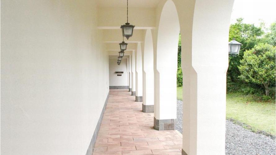 ホテルからクラブハウスへの回廊は特殊な形状の柱が不思議な雰囲気をかもしだしています。