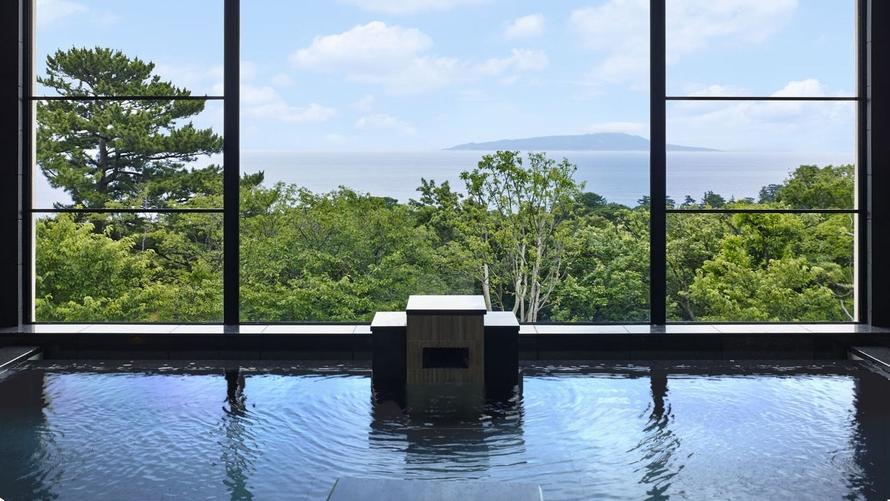 全面ガラス張りで開放的な空間となっており、伊豆大島や房総半島を望むことが出来ます。