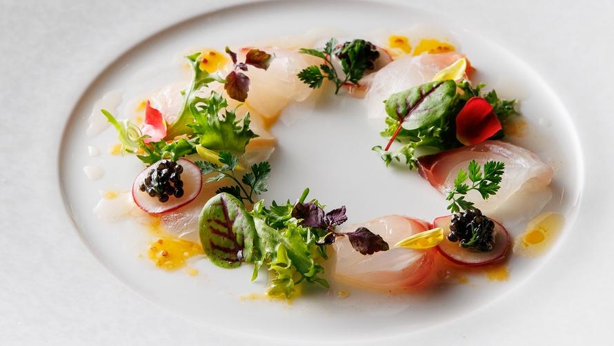 ・鮮魚のカルパッチョ 自家製フレンチドレッシング キャビア添え