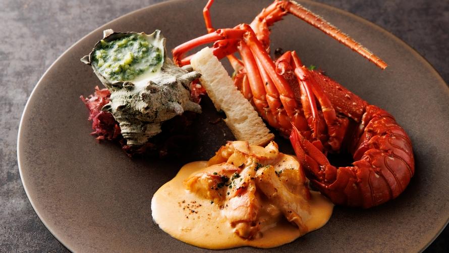 ・伊勢海老のグラタンとサザエの香草バター焼き