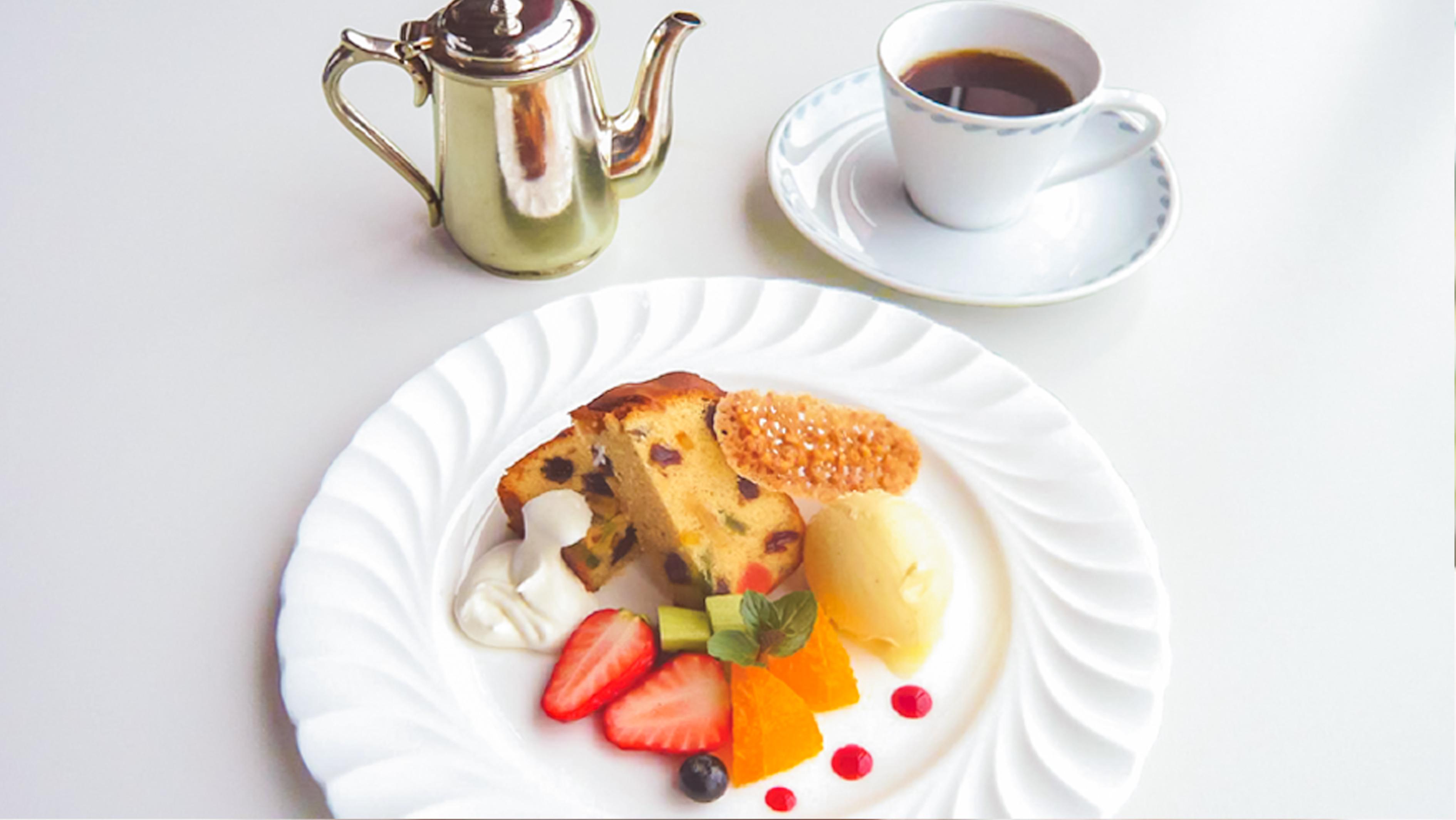 川奈ホテル自家製のフルーツケーキに生クリーム添え