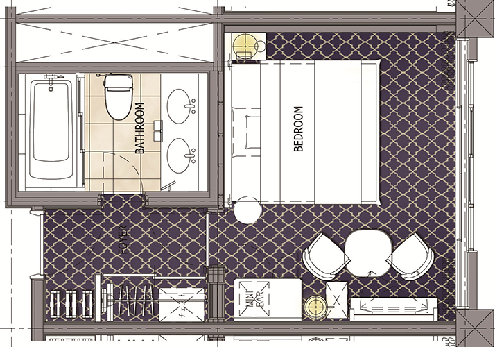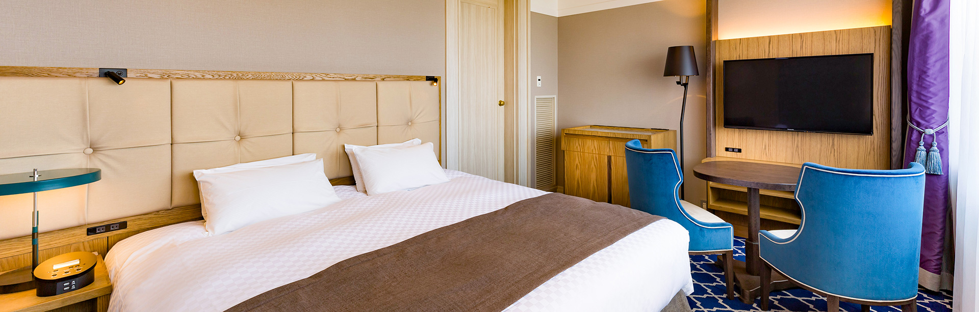 外国人のお客さまでもゆったり眠れるキングサイズのダブルベッドが1台はいっている部屋です。