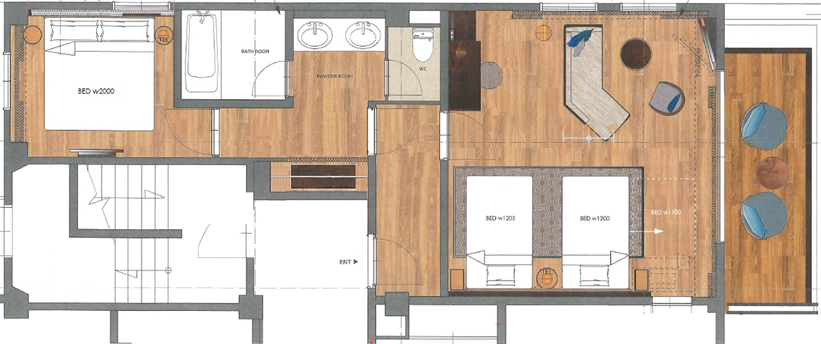 | ベッドサイズ | 幅200cm×長さ210cm 1台(ガーデンビュー側) |