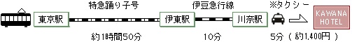 - ※川奈駅はタクシーの待機台数が少なくお待ちいただくことがございます。伊東駅からのタクシーご利用をお勧めいたします。