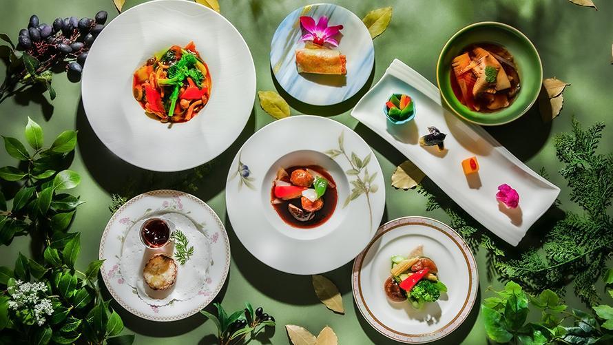 植物性由来の調味料と食材を使用したベジタリアン・ヴィーガンメニューをご用意いたしました。コース料理は全て五葷(ごくん)を用いず、使用する野菜にも意識。彩り豊かに工夫して作りあげた中国料理をお召し上がりいただけます。
