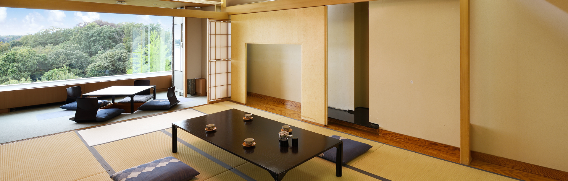 ゆったりとおくつろぎいただける、12畳の多摩湖レイクビューの和室。