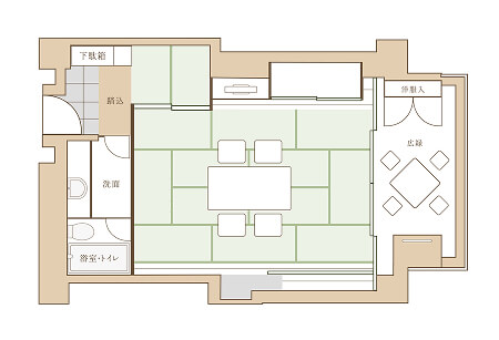 落ち着いた雰囲気の和室には、掘りごたつ付の広縁をご用意しております。