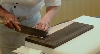 「WASHOKU 蒼天 SOUTEN」から季節のお便り 熟練の包丁技に見惚れる! “鱧(ハモ)の骨切り”