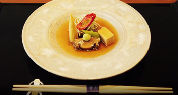 出会えるかどうかは運次第 !?シェフ渾身のスペシャリテ、貴重な干アワビを使ったヒトサラ