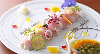 熟練の包丁技に見惚れる! “鯛の薄造り” 「WASHOKU 蒼天 SOUTEN」