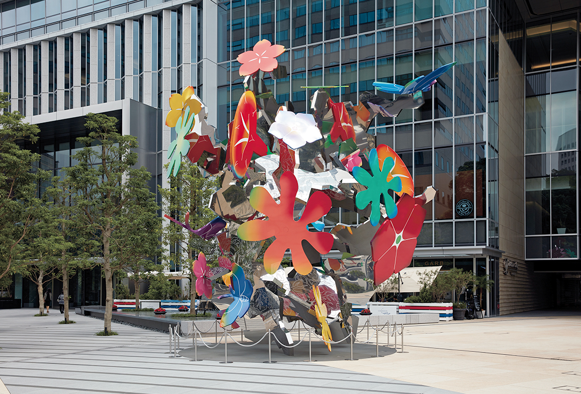 「ザ・プリンスギャラリー 東京紀尾井町」は、お客さまにお寛ぎいただけるラグジュアリーホテルであると同時に、五感を刺激するアートギャラリーとしてお楽しみいただける空間です。ホテルが建つ「東京ガーデンテラス紀尾井町」の敷地内に設置されたのは、9つのパブリックアート。入口正面には天高く華やかな存在感を放ち、お客さまをお迎えする「Echoes Infinity~Immortal Flowers~」(作 大巻伸嗣)。