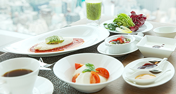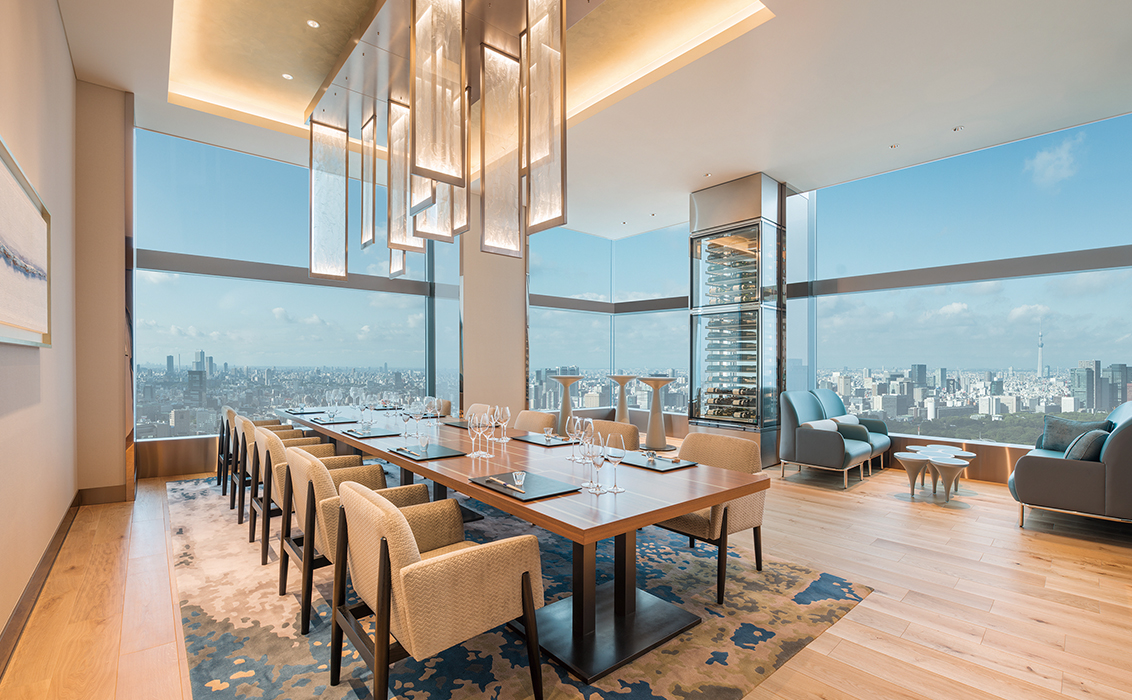 35階のメインダイニング「WASHOKU 蒼天 SOUTEN」のエグゼクティブ個室では、気のおけない友人とのくつろぎと語らいをお楽しみください。こちらでは、繊細さとダイナミックを併せ持つ“WASHOKU”懐石料理をお召し上がりいただけます。