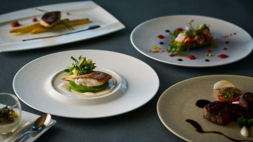 空中庭園をイメージした解放感のあるインテリアデザインの店内で、地上約180mからの東京の夜景とともに、