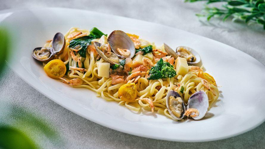 白身魚とムール貝に香草ソースを合わせた魚料理、仔牛にパテを挟みパン粉をつけ焼き上げた肉料理、桜えびとあさりのペペロンチーノ仕立てのリングイネなどシェフこだわりの一皿をメインディッシュにお選びいただけます。