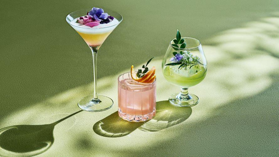 「季の美」を使用した春を愉しむ3種のカクテルをご用意いたしました。“浮揚感”漂う2フロア吹き抜けのカクテルラウンジ・バーでバーテンダーが創り出すスプリングカクテルをお楽しみください。
