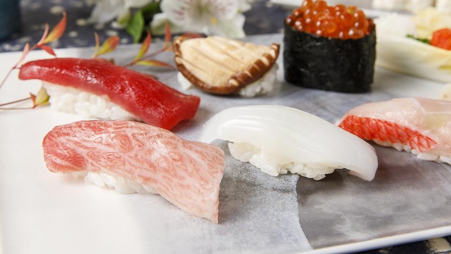寿司職人による当日の厳選食材をアレンジしたコースをランチとディナーでご用意いたしました。