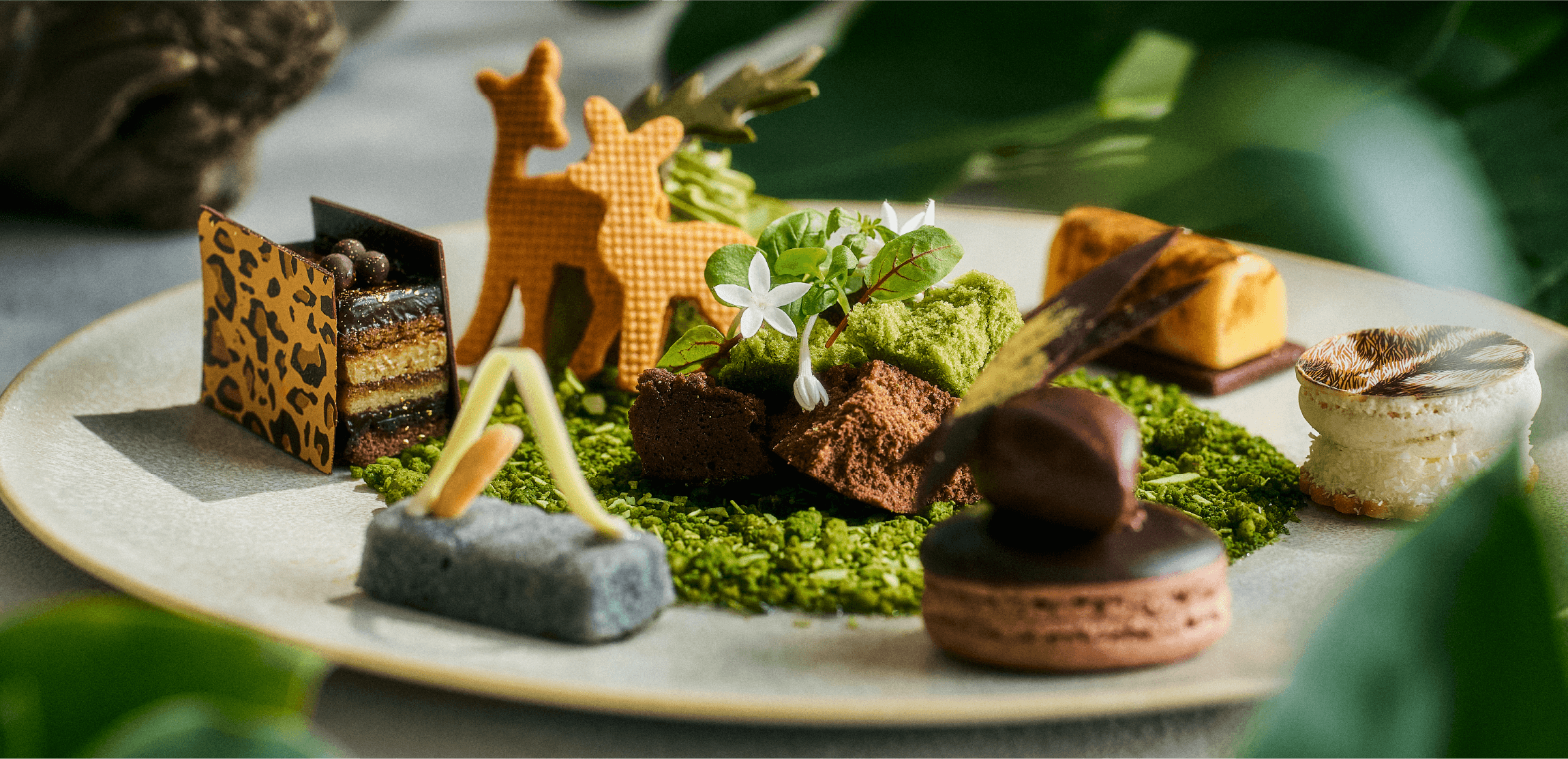 自然や動物をイメージしたパティシエこだわりのアフタヌーンティーを味わい、