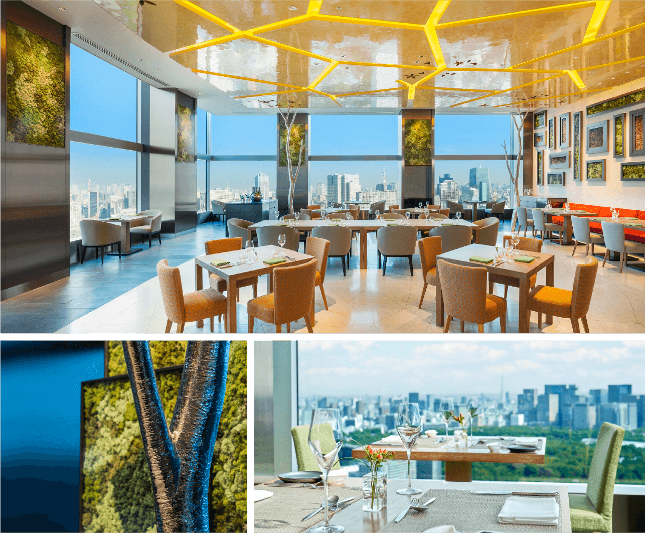 地上約180m、ホテル最上階のオールデイダイニング。「空中庭園」をコンセプトにした店内では、ライブ感のあるオープンキッチンの音や香りを感じていただきながらお食事をお楽しみいただけます。