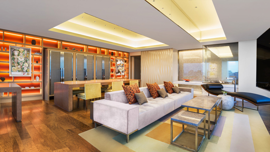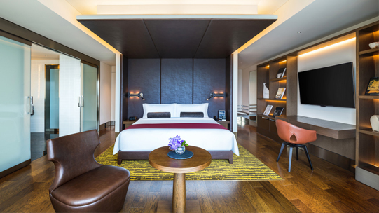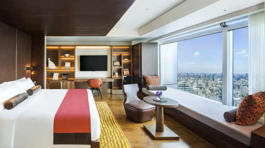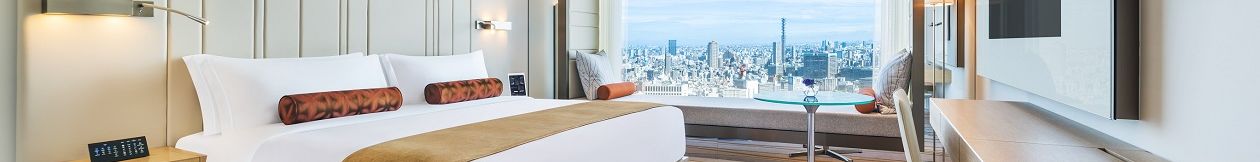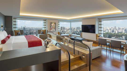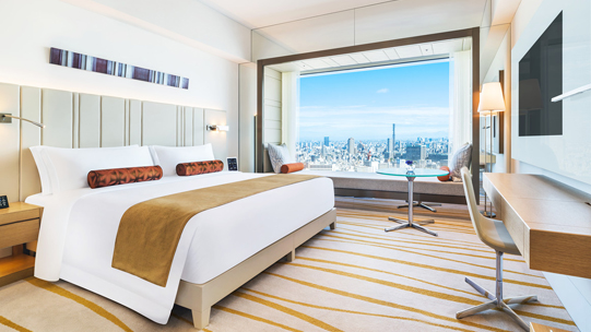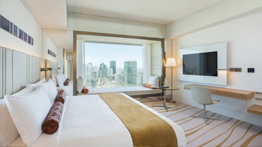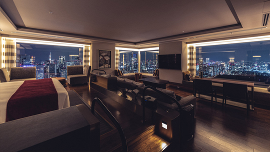 ダイナミックに広がる都心の眺望と、室内のデザインが調和し、一つのアート作品として完成したスタイリッシュな客室。スタジオタイプのスイートルームは、ベッドに寝転んだままの景色まで計算された芸術的空間です。