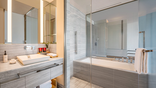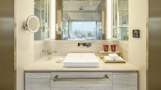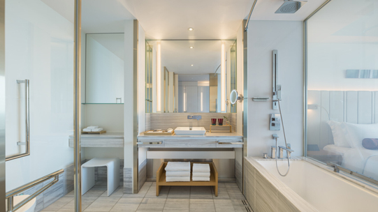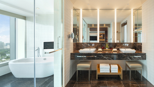 クラブラウンジアクセスなど、クラブフロア専用特典をご利用いただけるデラックスタイプ。開放感のある大きなバスルームが、より上質な時間を演出します。