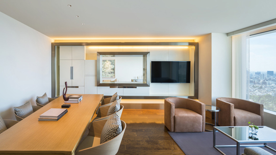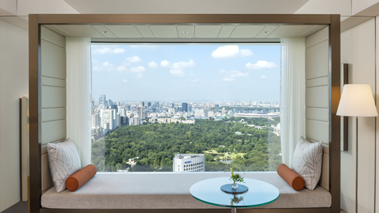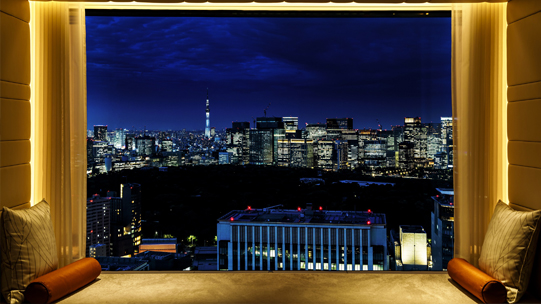 ライブラリー付きの広々とした空間とテレビ付きのビューバスが特徴のジュニアスイートクラス。このお部屋だけの特別なデイベッドから皇居や東京スカイツリー等の景色をお楽しみいただけます。