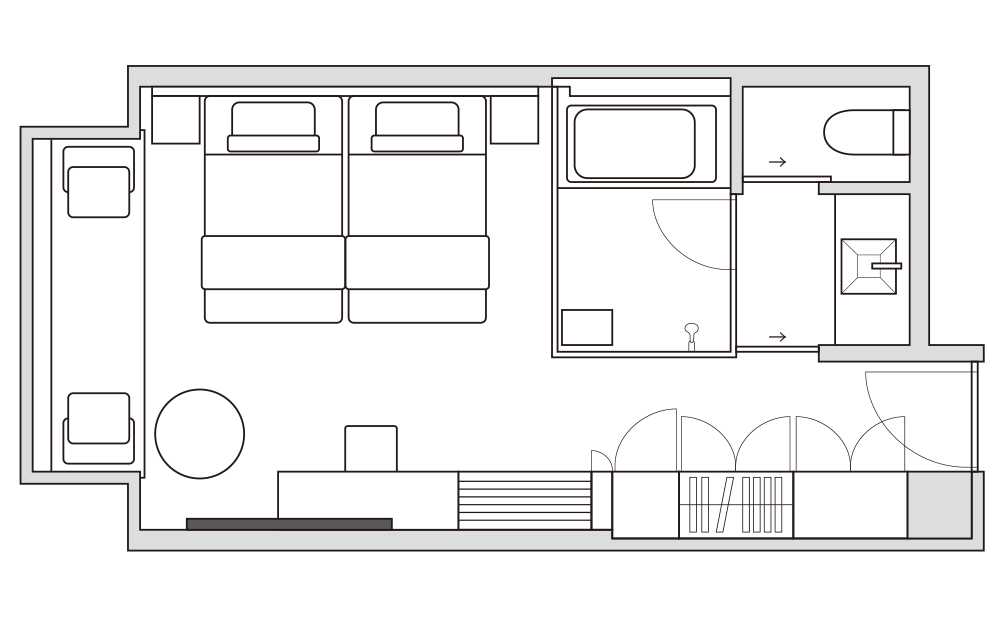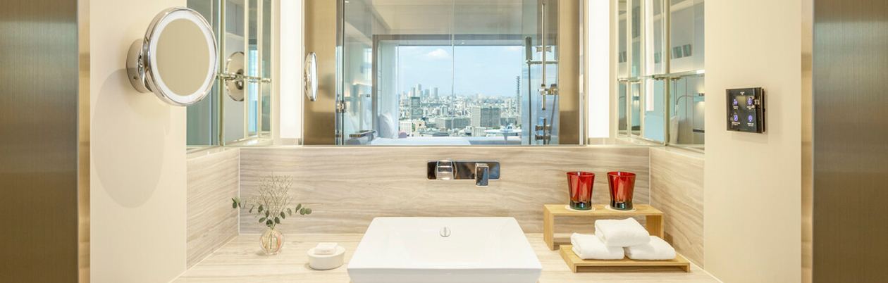 解放感のある大きなバスルームを完備し、窓際のデイベッドからアートのような都心の景色をお楽しみいただけます。