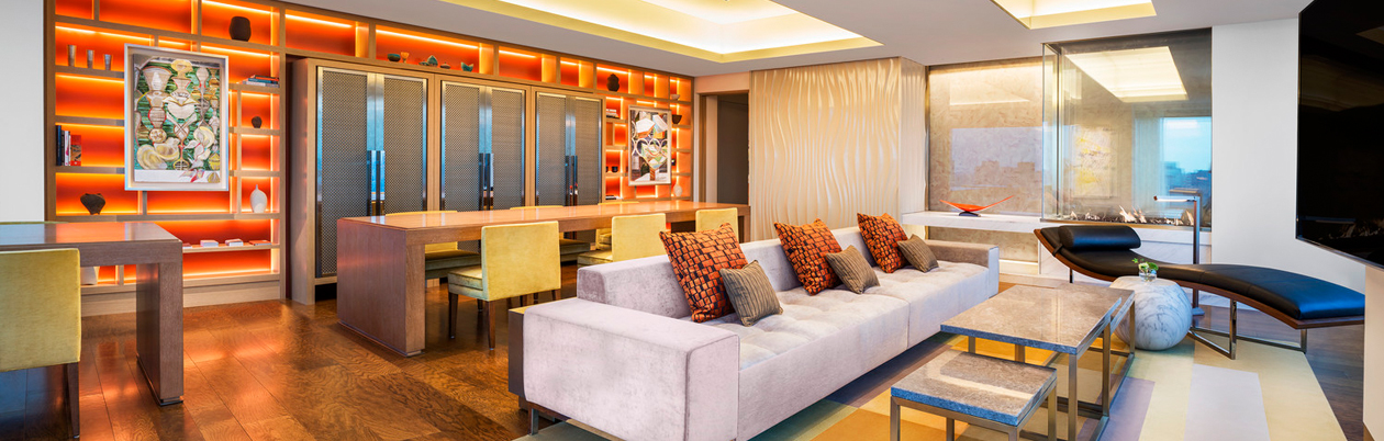 エレガントなインテリアとアートがギャラリーのような空間を演出するプレジデンシャルスイート。
