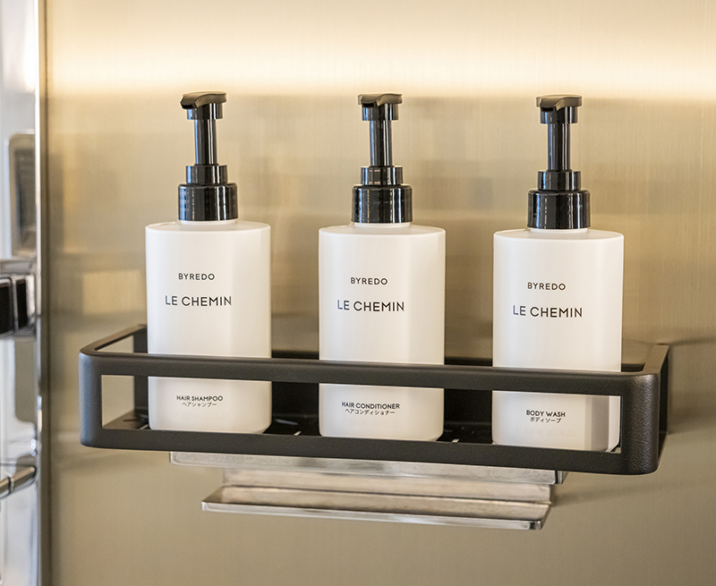 ポンプボトルへ変更 - プラスチック量の削減を目的に「BYREDO」のバスアメニティを、使い捨ての小型タイプからポンプボトル式に変更しました。