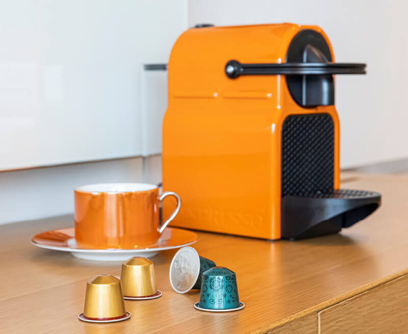 リサイクルプログラム参加 - 客室に設置しているコーヒーメーカーは、ネスプレッソによるアルミニウムカプセルのリサイクルプログラムに参加。地球環境に配慮した製品を使用しております。