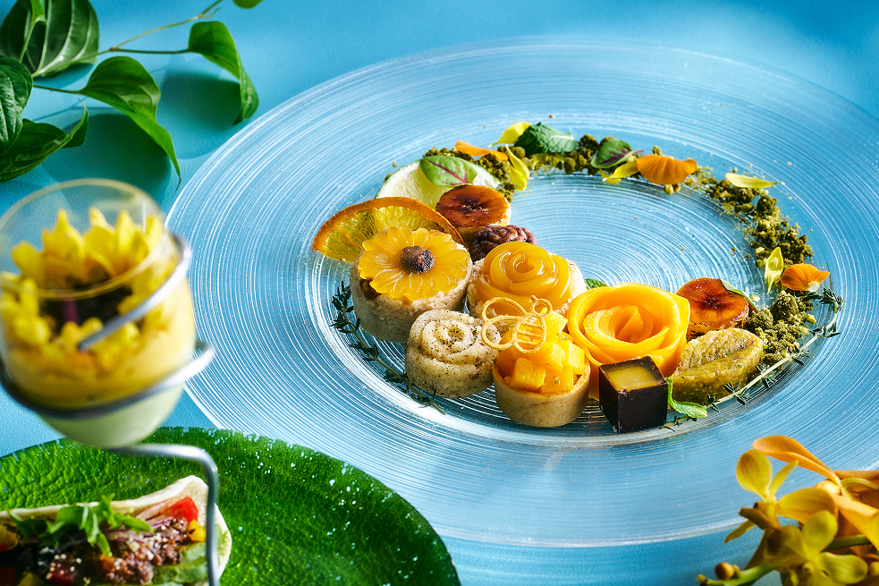 - 実り豊かな秋の恵みと収穫をイメージしたパティシエこだわりのプラントベースの「Harvest Grarden Afternoon Tea」。売上の一部を自然保全活動に役立てるため寄付いたします。