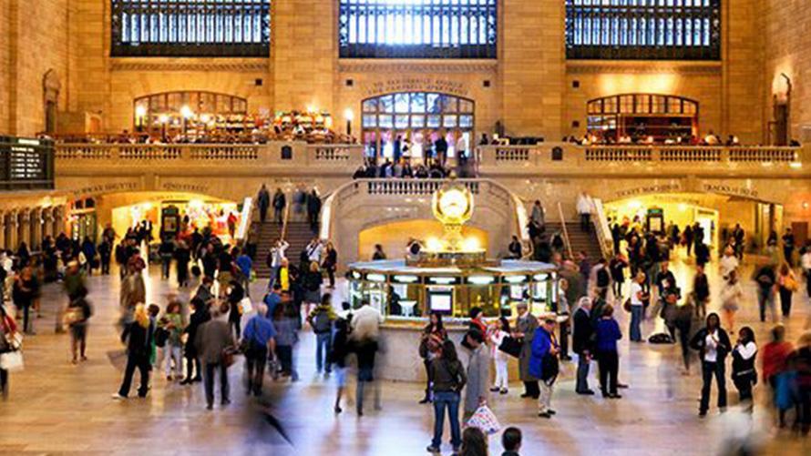 1913年建造のグランド・セントラル・ターミナルは、1日に75万人が利用するニューヨーク市の鉄道の拠点駅です。駅としての機能だけでなく、ボザール様式の歴史的な建造物で、多くの観光客が一度は訪れます。電車のご利用がなくても、特徴的な大きなガラス窓、昔ながらの時計台や星座のモチーフに彩られた天井画は一見の価値があります。