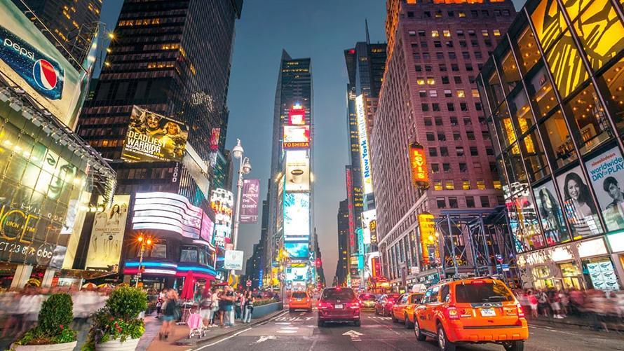 大晦日のカウントダウンで有名なタイムズスクエアは、常に明るいネオンの光に照らされ、世界中から訪れた人々で賑わっています。ブロードウェイに隣接し、M&Mチョコレートのテーマストアや、ディズニーストアなどの人気ショップも近隣に集合しています。さまざまな種類のレストランがあり、公演前のお食事などにも便利です。同エリアでは、話題のミュージカルはもちろん、アメリカのテレビ局のライブショーなども見ることができます。タイムズスクエアの中心にあるTKTSブースでは、当日のミュージカルのディスカウントチケットが購入でき、最大で50%引きというお得な値段で観劇を楽しむことができます。