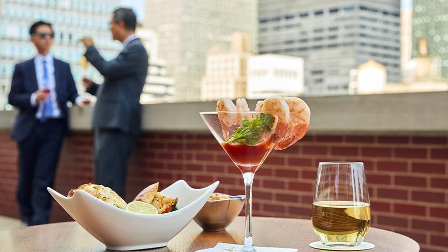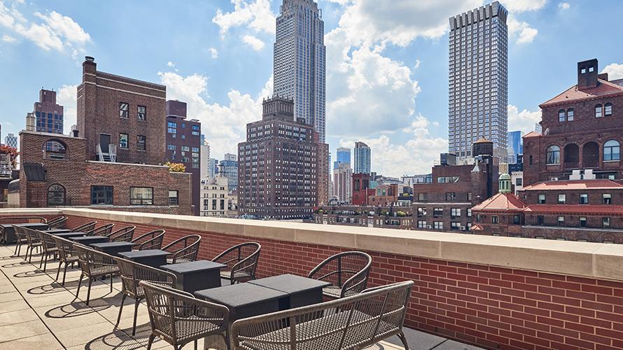 当ホテルの最上階には、ニューヨークの摩天楼を一望できる屋外のテラスがあります。エンパイヤステートビルディング、グランドセントラル駅、クライスラービルディングを間近で眺められるルーフトップにて、特別な方たちとカクテルはいかがでしょうか。
