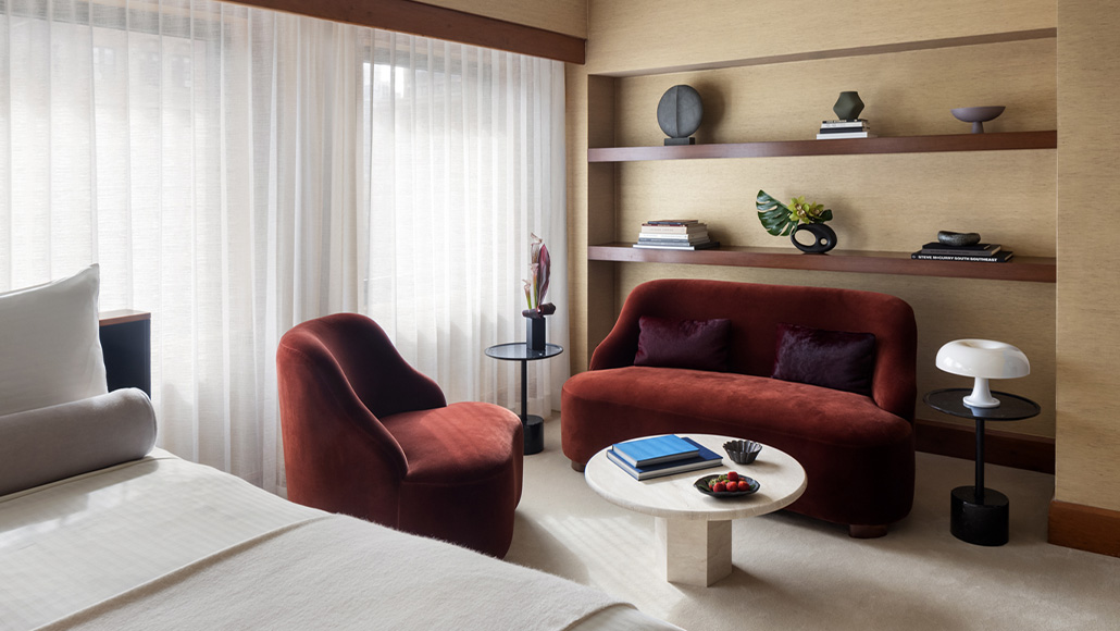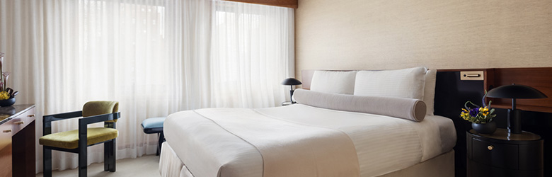 ジュニアスイートは、キングサイズのベッドが一台備え付けられています。広々としたお部屋(46㎡)にはワークデスク、ソファーとコーヒーテーブルがあります。日中は活気にあふれ、また夜は落ち着いた雰囲気のパークアベニューの景観をお楽しみいただけます。