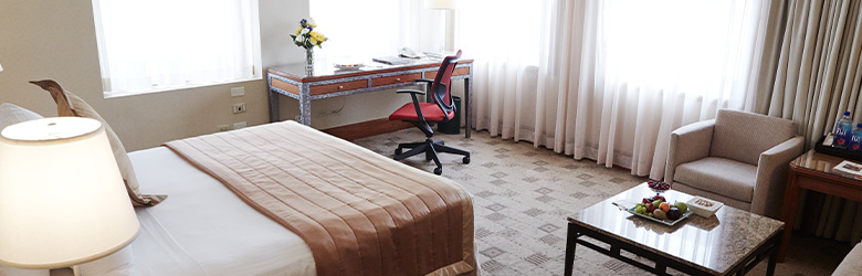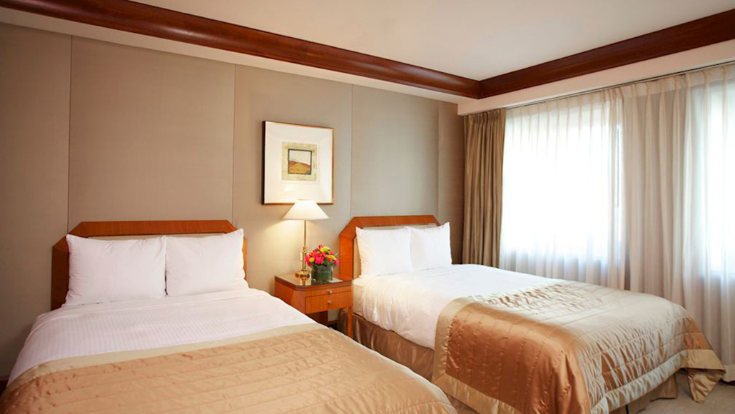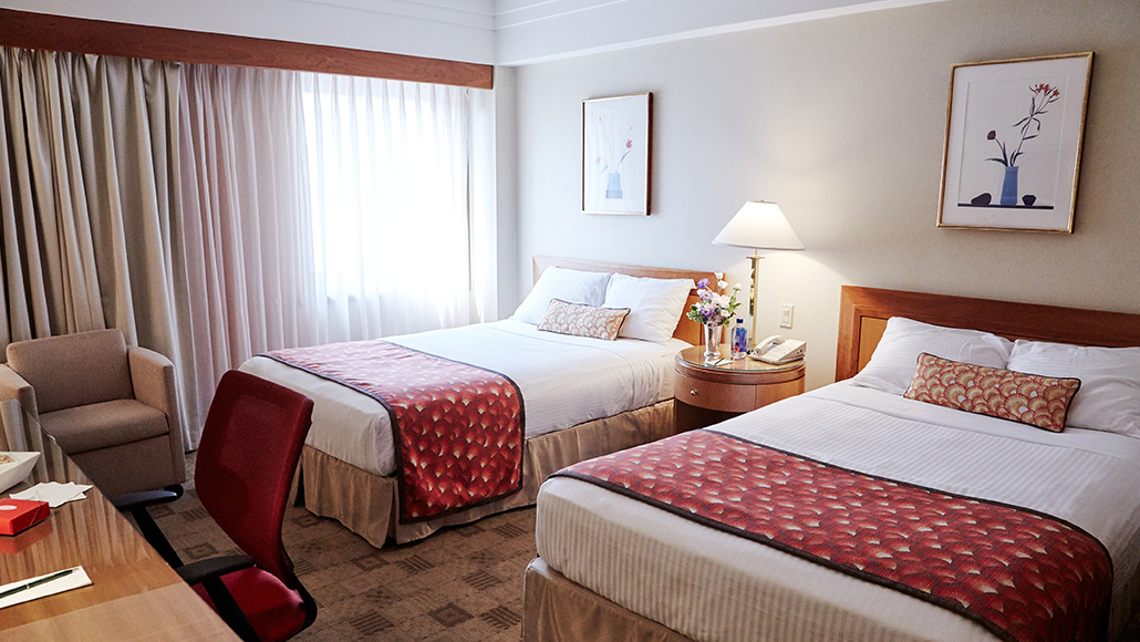 デラックスプレミアダブルルームは各階のコーナーに位置し、自然光が差し込む広々とした38㎡のお部屋です。フルサイズベッドが2台備え付けられ、ワークデスク、2人掛けのソファーとコーヒーテーブルを配置したくつろぎのある空間があります。また、大理石仕様のバスルーム、ゆったり肩までつかれる深いバスタブ、ウォシュレットを完備しています。窓からはエンパイヤステートビルまたはインテリアビューの景観がお楽しみいただけます。
