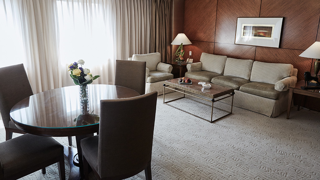 17階にあるエグゼクティブスイート2は、63㎡の広さにキングサイズベッド1台をレイアウトしたベッドルームと、広々としたリビングルームがあります。リビングルームには、ソファー、アームチェア、コーヒーテーブル、そして4人掛けのダイニングテーブル、ウェットバーがあります。マスターベッドルームには、ジャグジー付きバスとウォシュレットを完備。パークアべニューを見下ろす同スイートルームからは、グランドセントラル駅、クライスラービル、メットライフビルを眺めることができます。