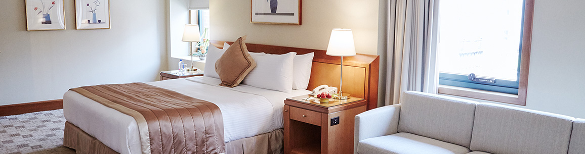 ジュニアスイートは、キングサイズのベッドが一台備え付けられています。