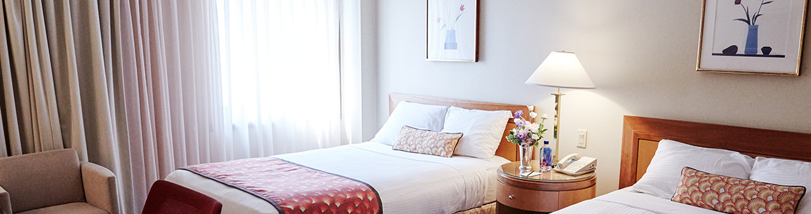 スターンダードタイプのスーペリアルームは、広さ約28㎡とゆったりとした空間にフルサイズベッドが2台備え付けられたお部屋です。