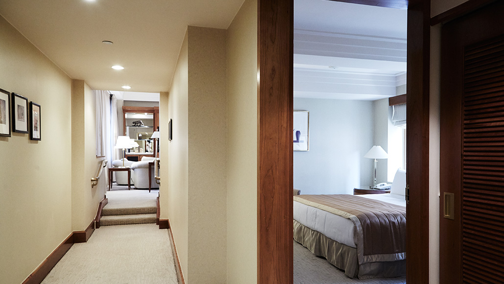 38丁目に面した4階から6階にあるタウンハウススイートは、74㎡の広々としたスペースが特徴。廊下と階段で別れた設計で、まるでマンハッタンのレジデンスに滞在しているかのようにお過ごしいただけます。リビングルームにはソファーベッドとアームチェア、コーヒーテーブル、機能的なワークデスクがレイアウトされ、ベッドルームにはキングサイズのベッドが1台あります。深いバスタブとシャワーが使える大理石のバスルームには、ゆったりとした空間を設けています。
