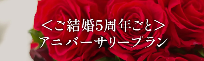 ご結婚5周年ごとに、特別な日をお祝いするにふさわしいアニバーサリープランをご案内いたします。