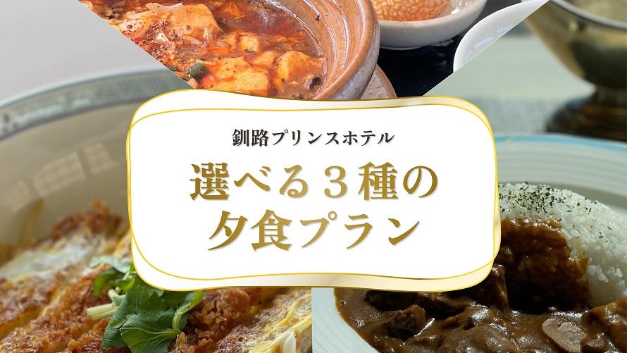 夕食はメニューを3種類からお選びいただけるほか、1ドリンク付きでお得にご利用いただけます。
