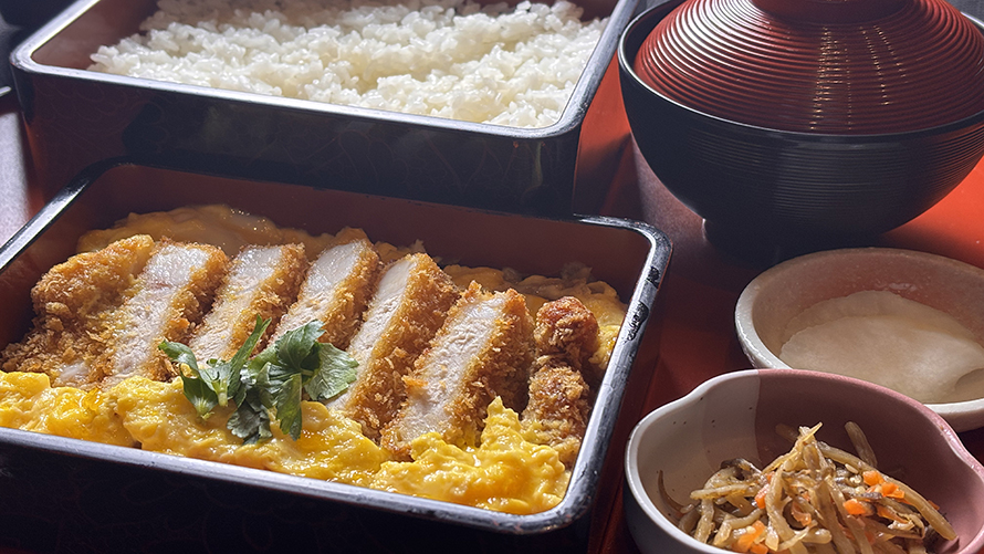 【夕食イメージ③】北海道豚肉のかつ重(味噌汁・香の物)