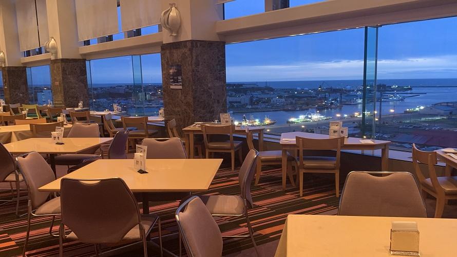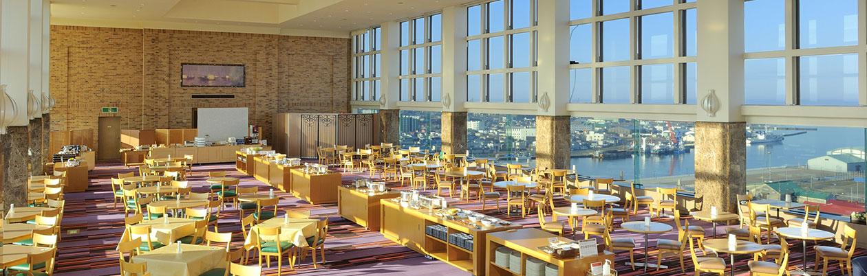 最上階にあり釧路市内の景観や世界三大夕日の一つでもある釧路の夕日をお楽しみいただける総ガラス張りのレストラン