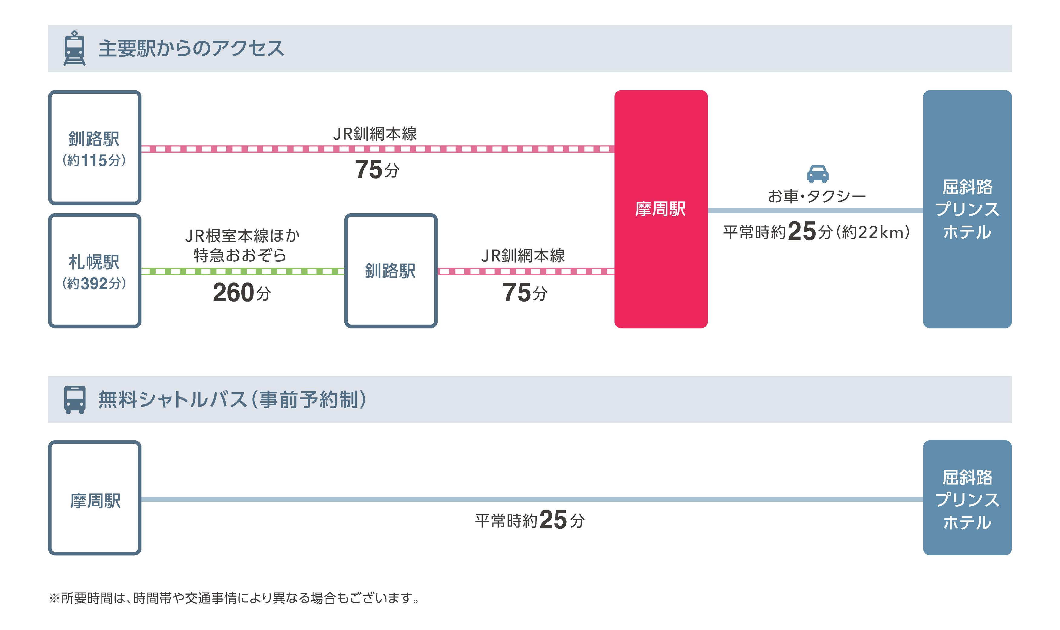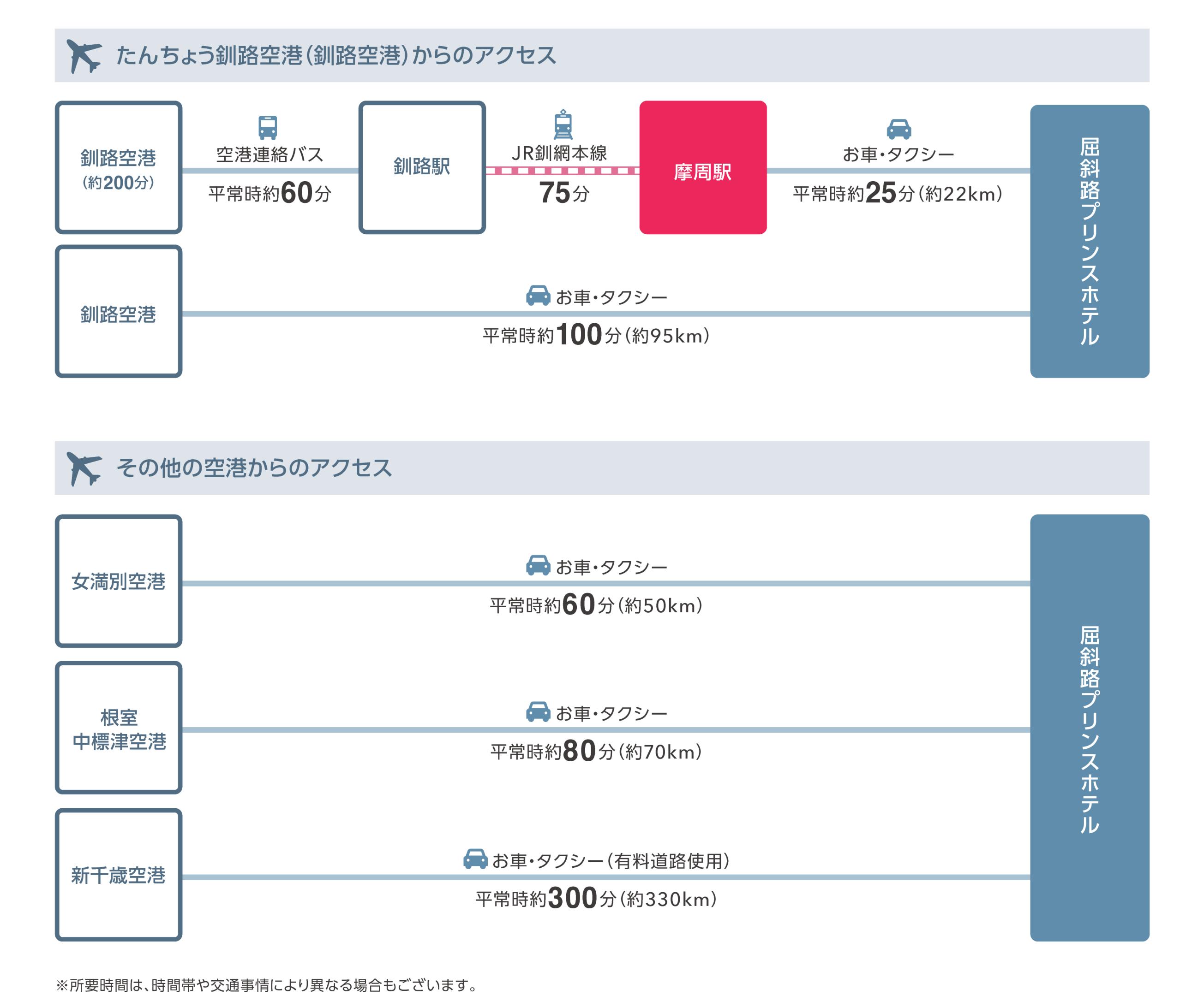 ・所要時間は乗り継ぎ時間・交通事情により変動いたします。