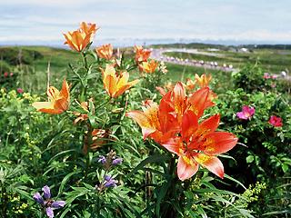 オホーツク海と涛沸湖に挟まれた約8kmの砂丘の花畑です。約40種類の花々が6月上旬から9月下旬までお楽しみいただけます。