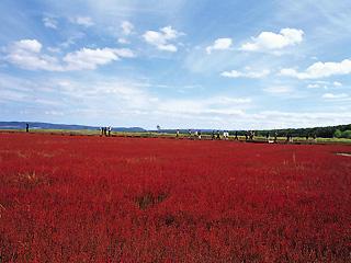 正式名は「アッケシソウ」というサンゴ草が8月下旬から10月上旬にかけて真っ赤な絨毯のように染まります。特に群落日本一の卯原内周辺は国内でも貴重なサンゴ草の群生地です。